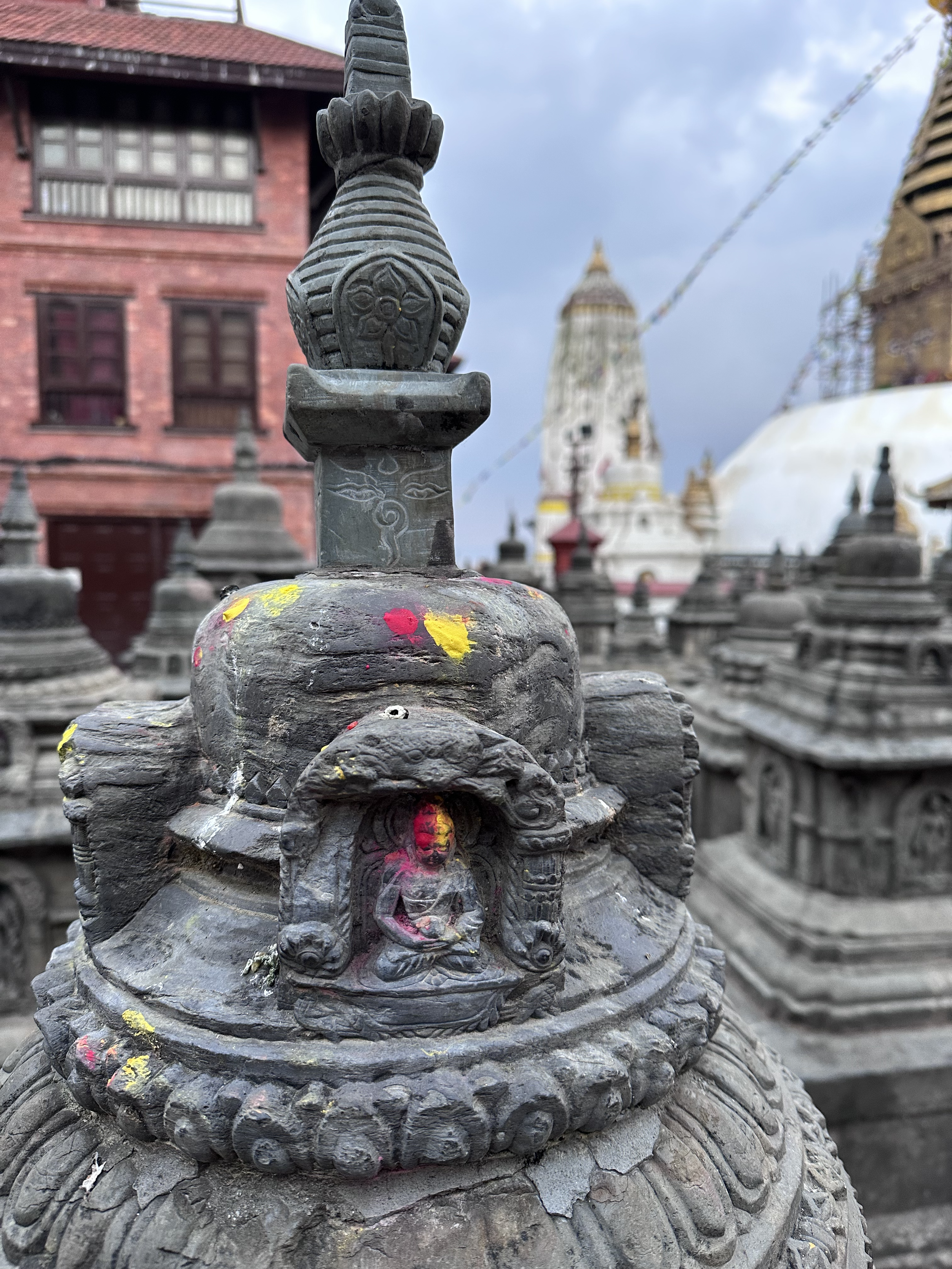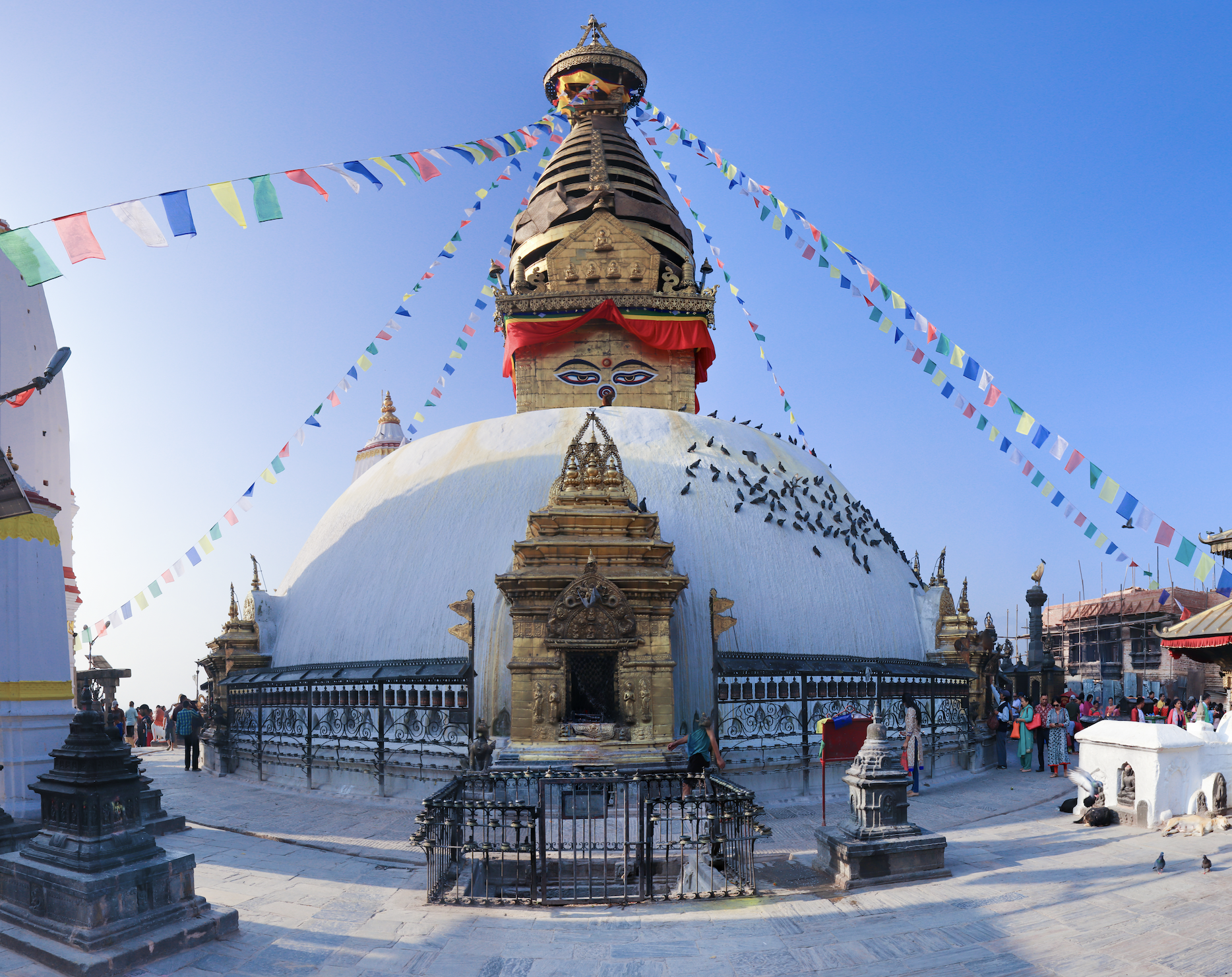 Meet in Kathmandu (alt. 1300 m / 4265 ft) around noon, transfer from airport to hotel Thamel in the heart of Kathmandu. Explore the neighborhood, option to visit monkey temple Svayambunath or explore historical Durbar Square. Welcoming/Stretching/Grounding session with Suzanne in pm.