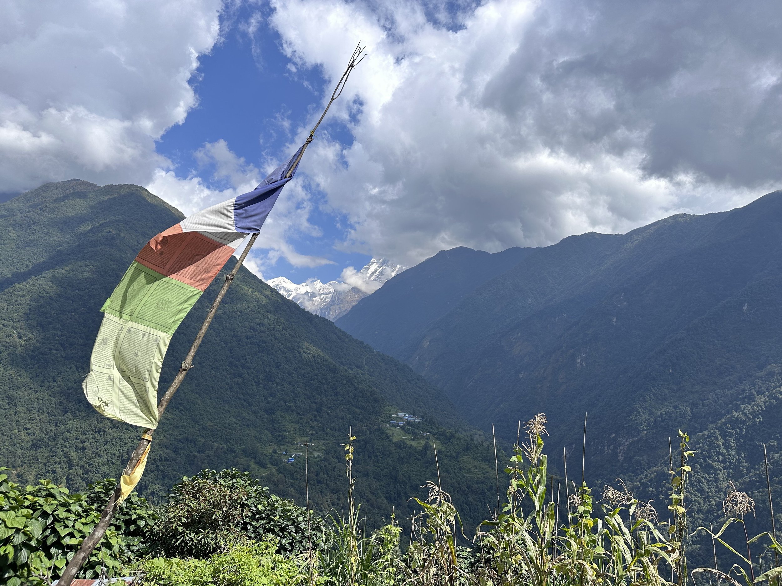 Rest day at an Idyllic teahouse in Chuli rimmed with prayer flags and gorgeous views.